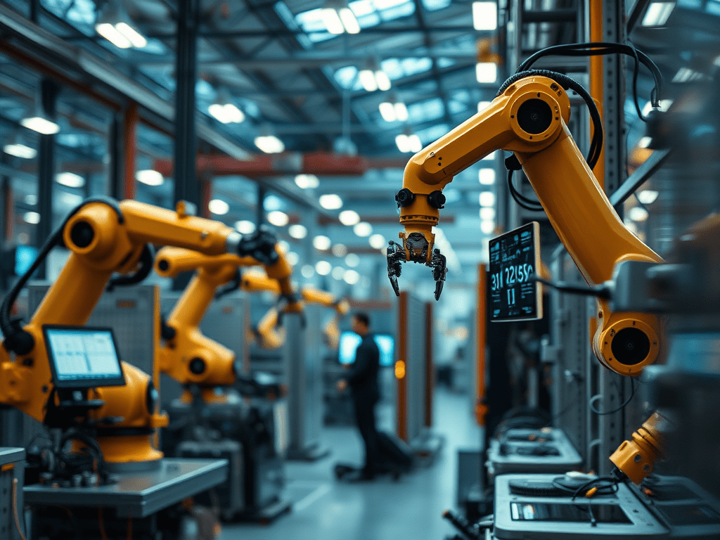 IA e machine learning permitem que sistemas aprendam e se adaptem a partir de grandes quantidades de dados. Isso é utilizado para prever demandas, otimizar o uso de recursos e ajustar automaticamente os parâmetros de produção. - Robótica Avançada e Automação